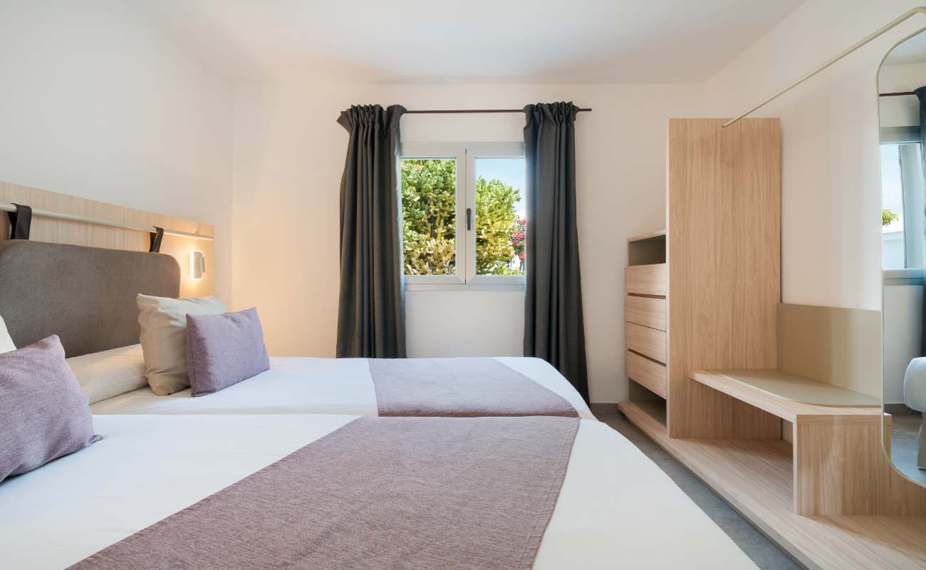 Bienvenido a nuestros amplios Apartamentos de 2 Dormitorios, ideales para familias o grupos, con Wi-Fi gratuito y aire acondicionado para tu máximo confort. Con 60 m² de superficie, ofrecen espacio para hasta 5 personas y cuentan con cuatro camas individuales de 90 cm distribuidas en dos dormitorios separados.